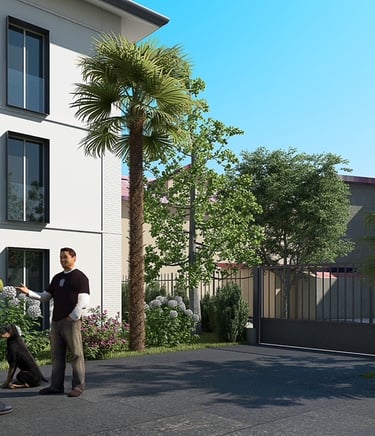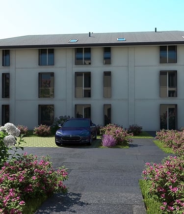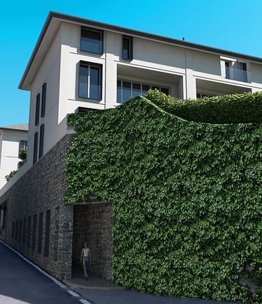 Il progetto consiste nella costruzione di due edifici con caratteri morfologici in linea con il contesto storico e con la vicinanza del Castello di Carimate. Ogni edificio è composto da 8 appartamenti, di cui alcuni attici panoramici con ampi terrazzi.